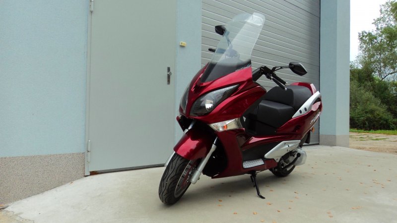 Cena: 49900 kč (včetne 20% DPH) Naprostá novinka pro tento rok vyráběná firmou Jonway .Nádherný velký skútr Jonway GTS ,který vzdáleně připomíná skútr Honda SilverWing.Od ledna 2013 na řízení tohoto skutr již stačí řidičské oprávnění skupiny B(tedy na auto).Možno řídit od 16 let věku.. Samozřejmostí je elektrický i nožní startér a spolehlivý brzdový systém kotoučovými brzdami.Pozor přední kolo má 2 brzdové kotouče což je naprostý unikát. Díky své velikosti a robusnosti se tento skútr vyznačuje velmi vysokým konfortem při rychlé jízdě nebo i při jízdě s pasažérem .Skútr je vybaven bočním i centrálním stojanem pro snadnou manipulaci i pro dívky.Velký úložný prostor pod sedadlem.Úsporný provoz.Spotřeba 3l/100km. GTS125 Suchá hmotnost: 160 kg Rozvor: 1650 mm Vnější rozměry: 2350 * 760 * 1395 mm Maximální rychlost: 85km / h (možnost předělání variátoru až 110km) Maximální užitečná hmotnost hmotnost: 160 kg Objem palivové nádrže: 12.0L Brzda typ: F:2x Kotoučový Disk, R: Kotoučový Disk Typ motoru: 4-takt,, vzduchem chlazený Maximální výkon: 6.0kw/7500r/min Startér: Elektrické Rozměry pneumatik: 120/80-15, 140/80-14 Velikost baterie: 12V/9AH K odběru začátek listopadu 2012